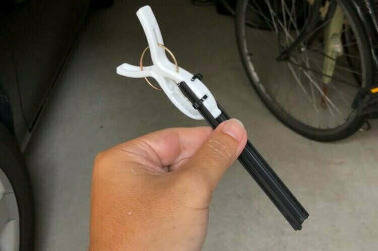 このタイプは、途中で吸盤が剥がれるのが嫌なので、洗濯バサミ方式に改造します。