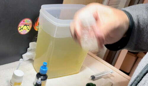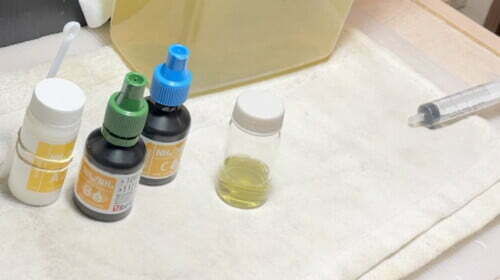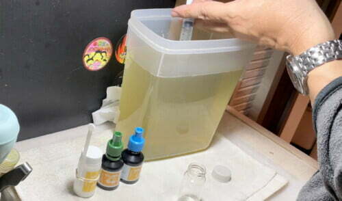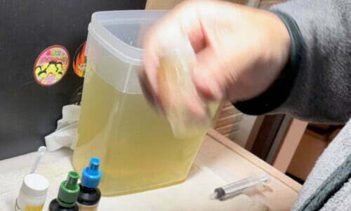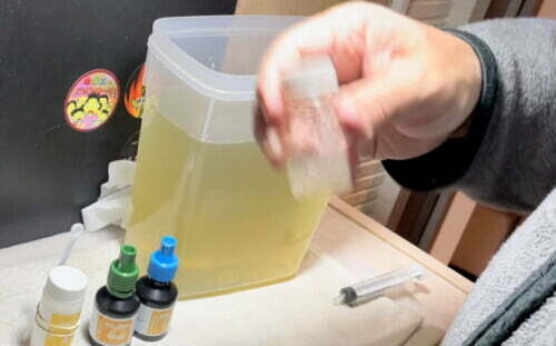 まずは、ミジンコの培養液を吸い出して