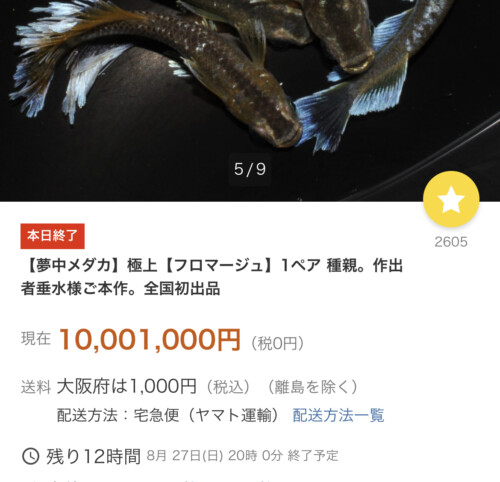 せっかくなんで、稚魚落札のいろいろを検証していこうと思います。
