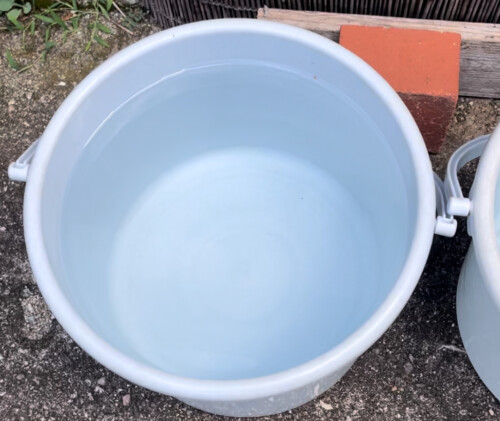 白バケツに水を入れて、日の当たる場所に放置。(簾あり)