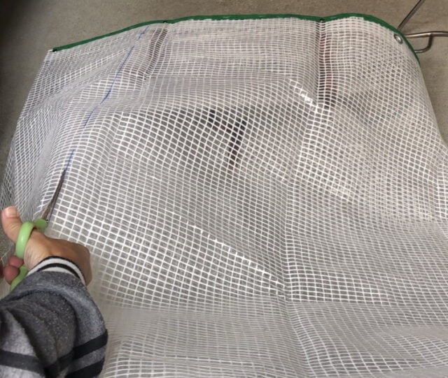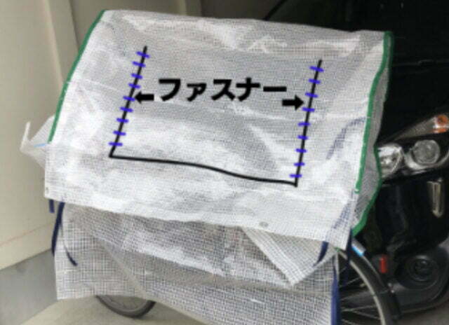 去年はビニールシートに直接止めていたため、皺が寄って開け閉めがし難くなり、挙句の果てに壊れました。