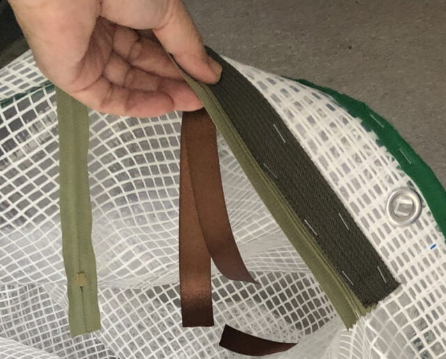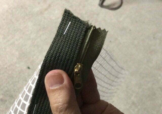 入口部分の下はファスナーが取付できないのでマジックテープ止めにします。