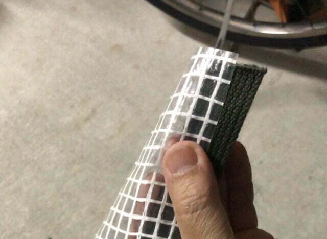 こちらもベルトを使いますが、ビニールシートから2cmほど、はみ出して取り付けます。