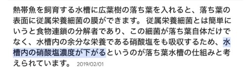 「落ち葉 水槽」で調べると、バクテリアが湧く