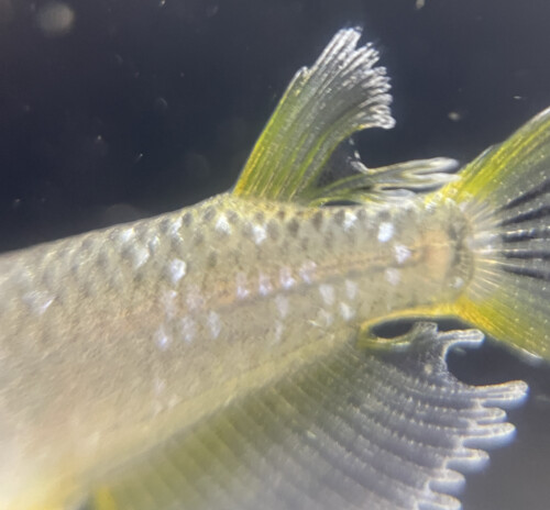 特徴としては、ヒレ中に白い結晶を多く持ち、ロングフィンが発現する性質を持っています。