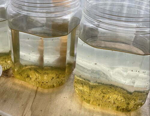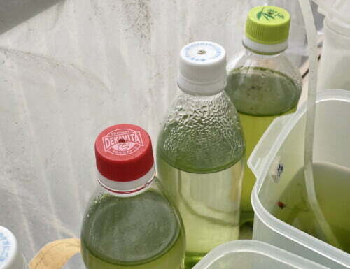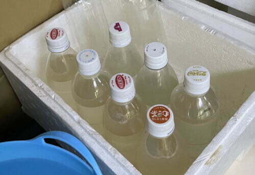 クロレラの追加が出来ず、透明になったミジンコ容器