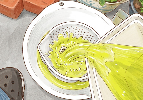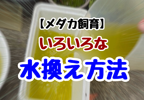ザルやネットでメダカとゴミを分離して水を入れ替える