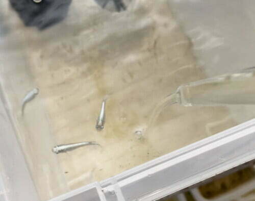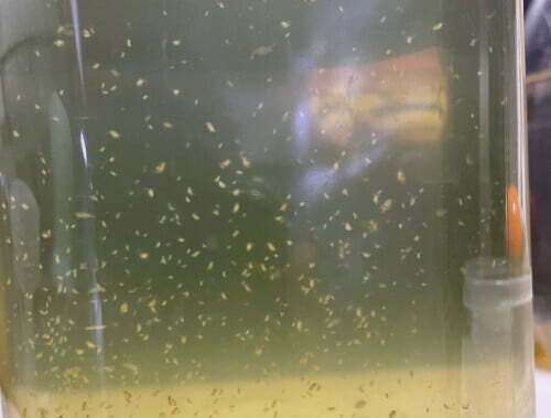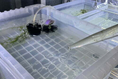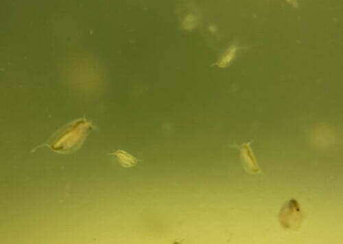 ミジンコは、針子容器に湧いてるのを5匹づつ投入