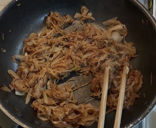 👉 玉ねぎをしっかり狐色になるまで炒めた。