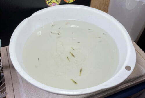 では、まずメダカを掬います。
