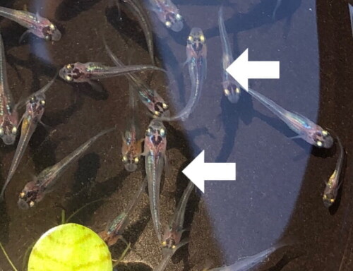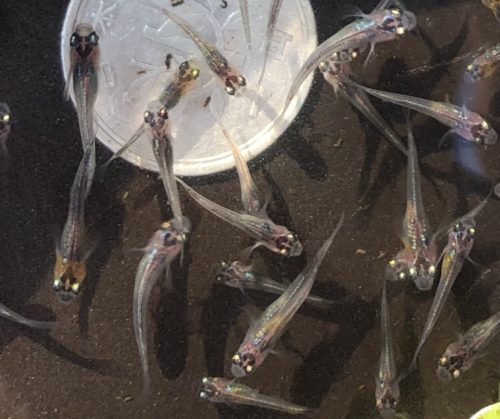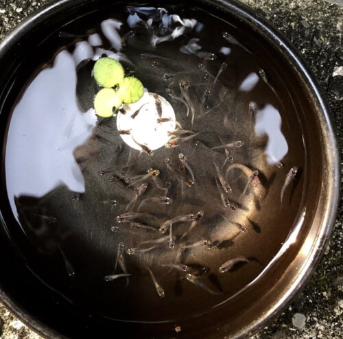 掬ったついでに大きいサイズの稚魚達をじっくりと観察してみました