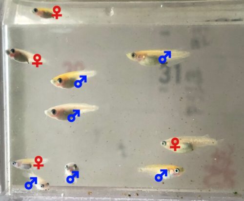 うちの黄桜ラメ、1ペアから何とか20匹以上に増えました。詳細は、こちらからしかし、新たな疑惑が…それはメスが少ない?ちょっと確認してみました。ドキドキ結果は?まず、1匹目 やや背曲がり色・ラメは、まあまあやけど…ここは厳しくいきたいので種親...