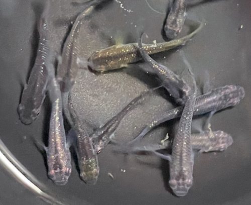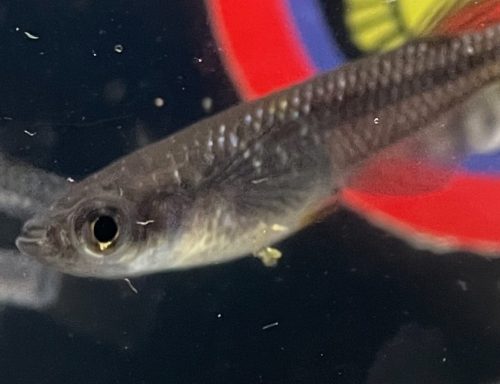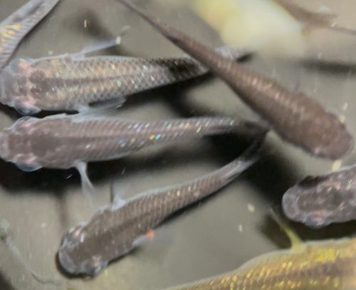 先日、黒メタルと言うメダカを見てたのよね。ちなみに黒ボディにアースアイのメダカである。(ハウスネーム)側面のグローボディにこだわって累代してるのだが、なかなか上手いこといかんのよね。😭ん?なんか、変わった模様がある。こ、これってついにキター...
