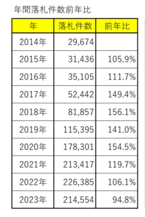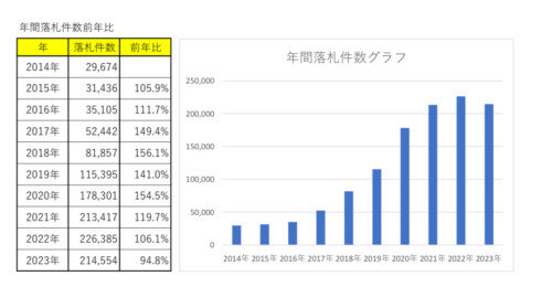 こちらの年間落札件数を見ると…