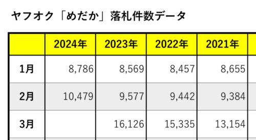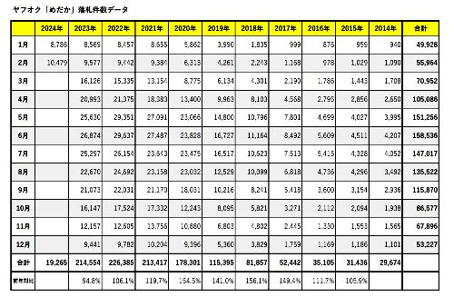 実は、2024年の1月と2月を見ると落札件数が伸びとる。
