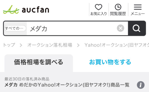 今回作ったデータは、オークファンと言うサイトを使いました。