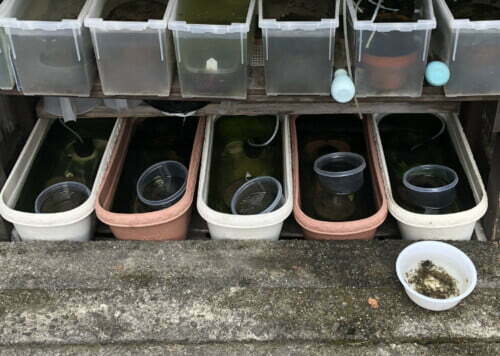 水換え頻度は、屋外容器は週一回、室内の種親容器は週二回やっています。(出来れば週二回はしたいところですが)