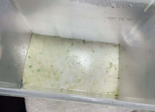 こんな感じに容器の底に溜まるネトネトしたのは、残った餌が底に溜まった物です。(餌あげすぎです😓)