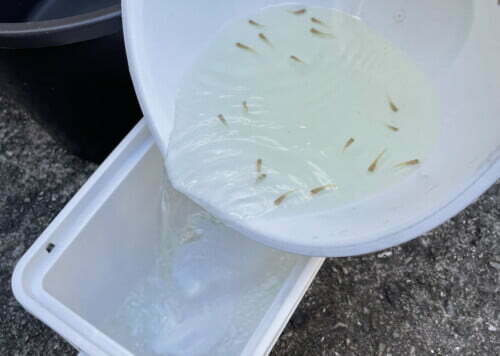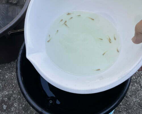 ⑥もともとの飼育水が1割くらいになるように減らしてから、