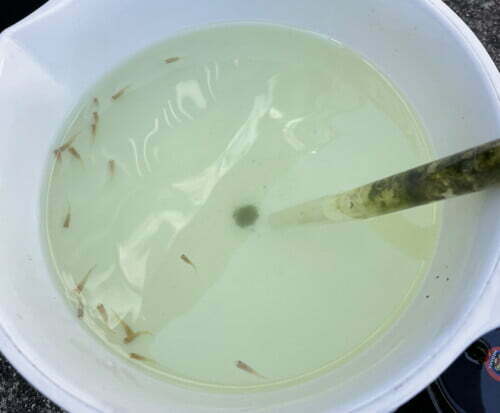⑤容器の中心に集まったゴミをスポイトで取り除きます。