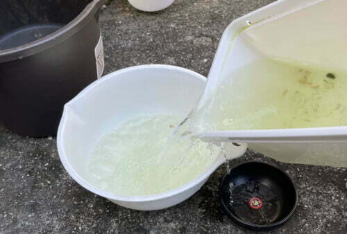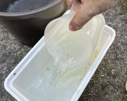 バケツに飼育水を入れる。