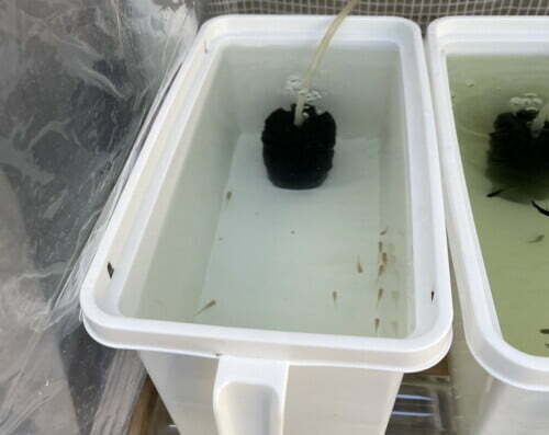 この水換えは、容器を持ち上げるので、今年は水替えしやすいように容器の大きさを10L程度の小さなものに変更しました。