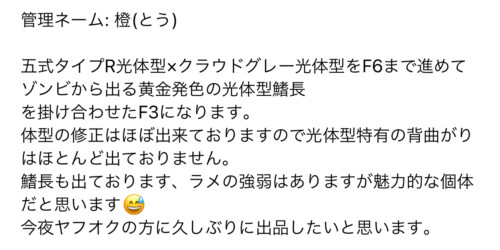 せめて、ヤフオクでハウスネームで出品する時は、どんなメダカなのかを説明文に書いてほしいな。(読み方も…)