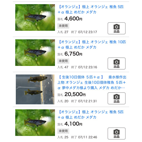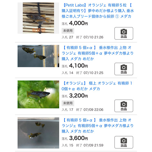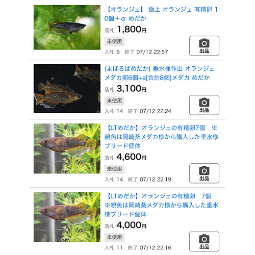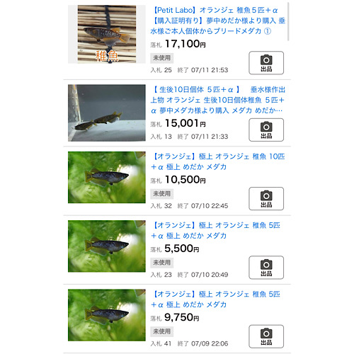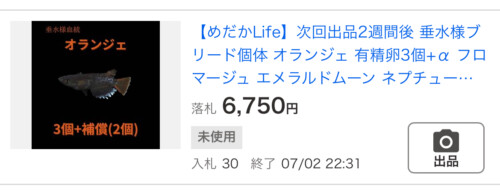 初出品を落札した方は、ぼちぼち成魚販売するんじゃないかな?