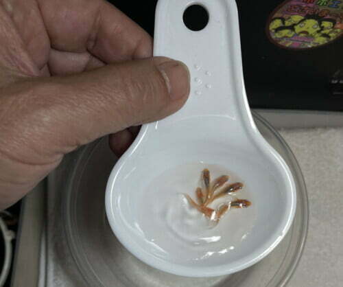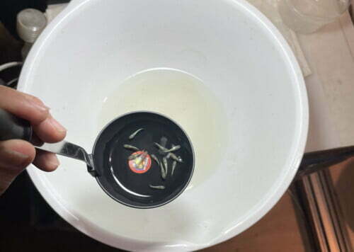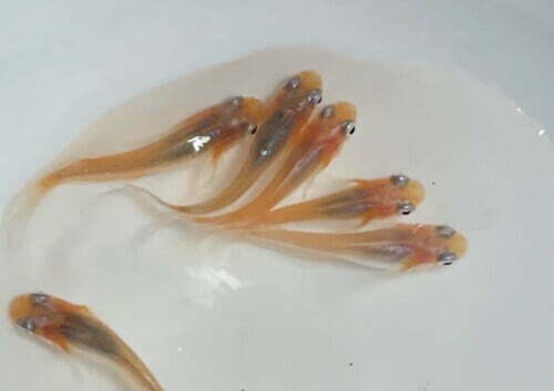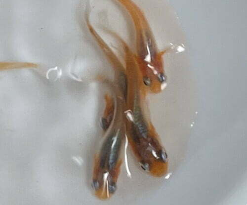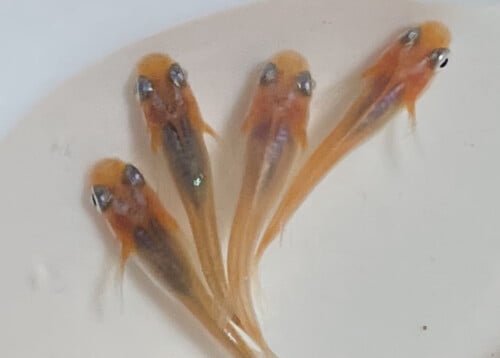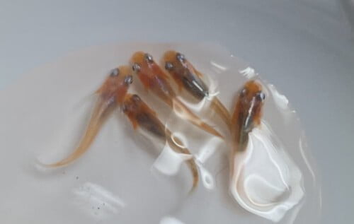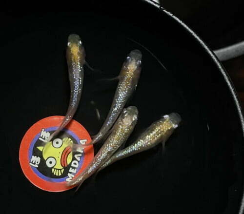 お玉でメダカを撮ると、わたしにしては綺麗に撮れる。