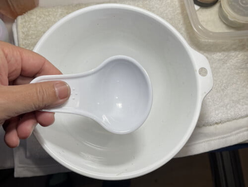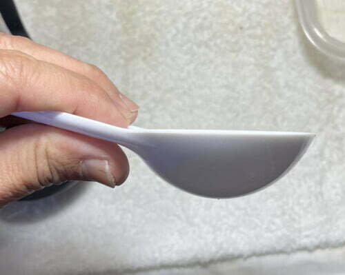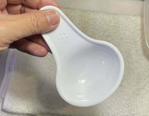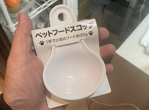 犬や猫のドライフードを掬うやつですが、色が白なので使えるかも