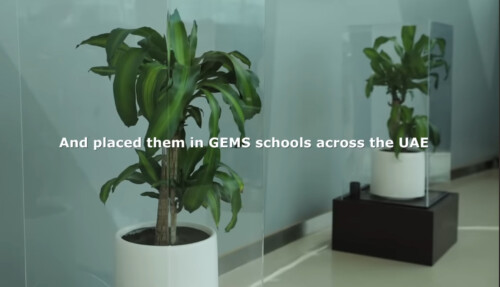 実験では2つの同じ種類の植物を、同じ飼育条件にして学校に設置。