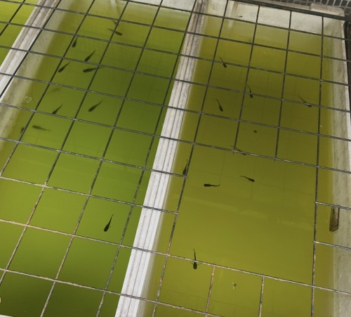 約40ケースある中で、2ケースだけメダカが浮いてる。