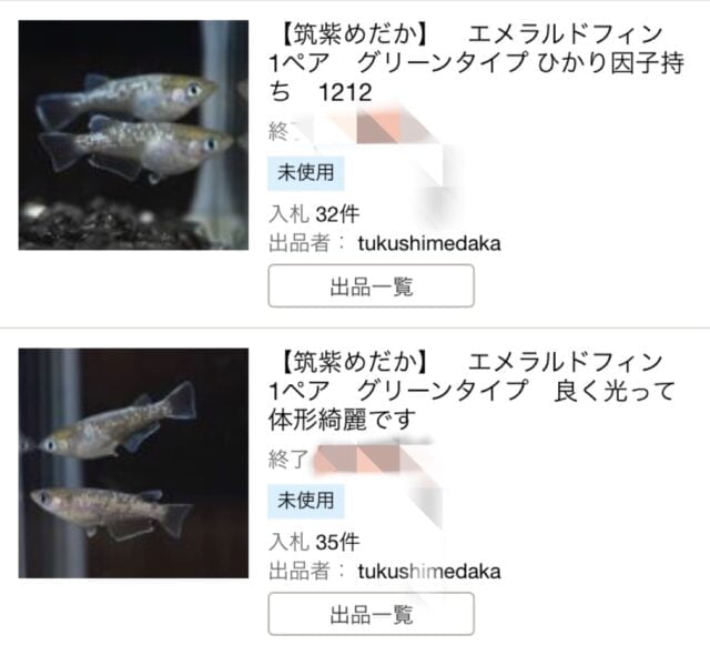 その日のエメラルドフィンを出品してる中では、「筑紫めだか」さんがおられました。