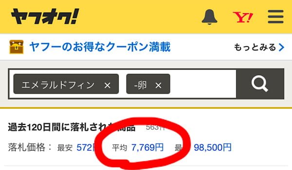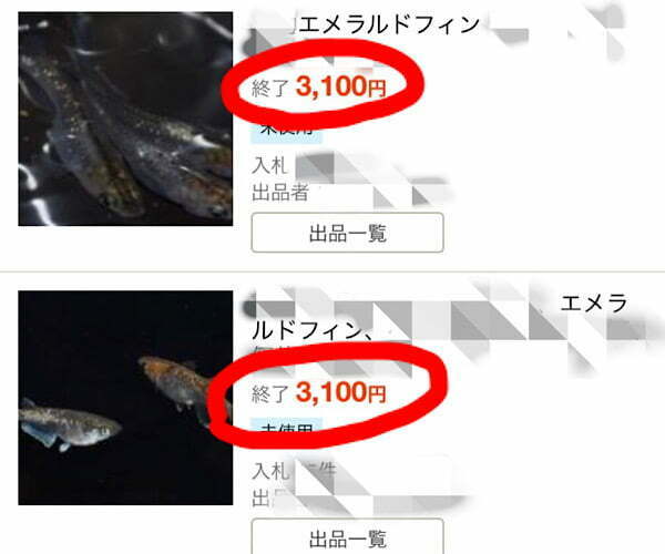 ヤフオクでエメラルドフィン(成魚)の落札相場を調べた結果