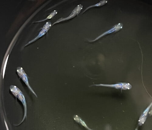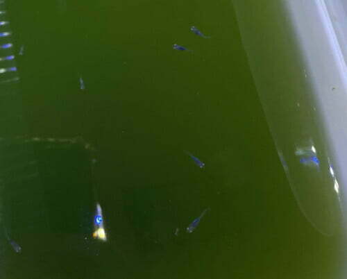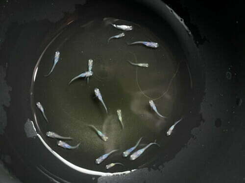 しずく、稚魚は青い粒が泳いでて可愛いですよね!まさにしずくの様です😃
