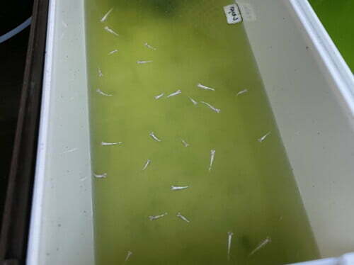 ゆとり飼育で冬の間にヒレを伸ばす作戦です。