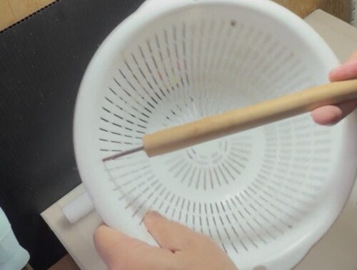 ① ザルは直径20cm(安心の100均)