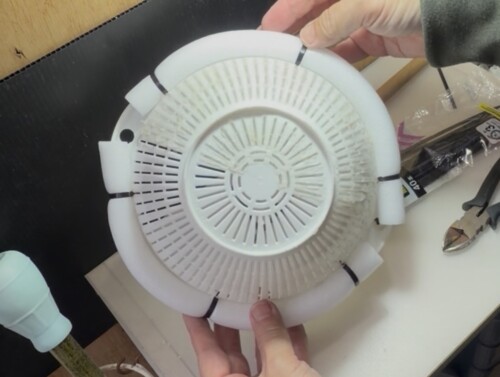 ③ 浮き具を縁に沿わせてバンドで固定