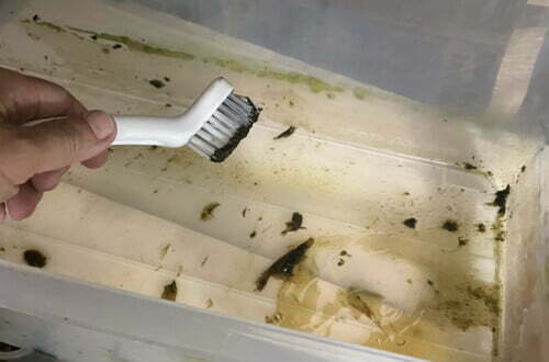 スポンジだとすぐに目が詰まるので、メダカのブラシが大活躍!