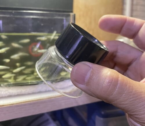 選別する時は、一匹づつ拡大鏡で見ていかないといけない。