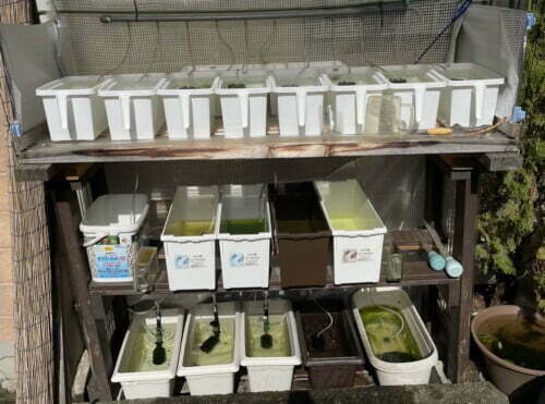 何とか屋外の容器だけでも午前中に水換えを終わらせたい。