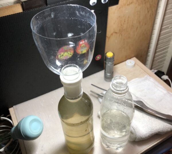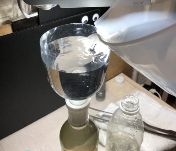 あとはこの状態で放置しておくとゾウリムシが上の容器に集まるはず…
